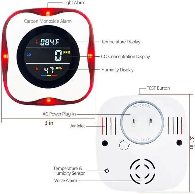 Compact Design - Portable CO Gas Detector is small and light, can be carry to anywhere easily, Big color LCD display, The high-definition screen makes it easy to read even at night.