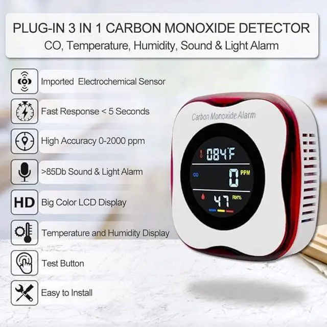 Protect Your Home - This 3 in 1 carbon monoxide detector are suitable for bedroom, kitchen, living room, bathroom, apartment, garage, office, restaurant, hotel, RV etc.