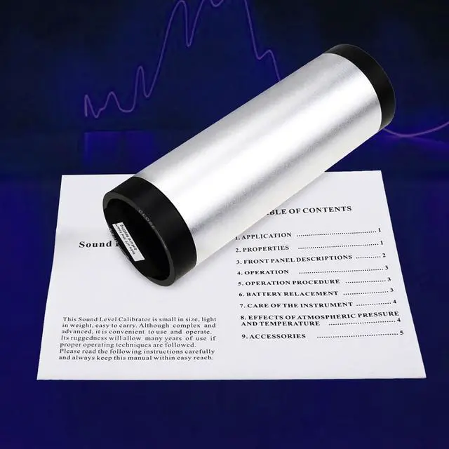 Frequencies: It generates standard levels and frequencies; with sound pressure levels of 94 dB and 114 dB; The calibrator ensures high accuracy with a deviation of only ± 0.3 dB