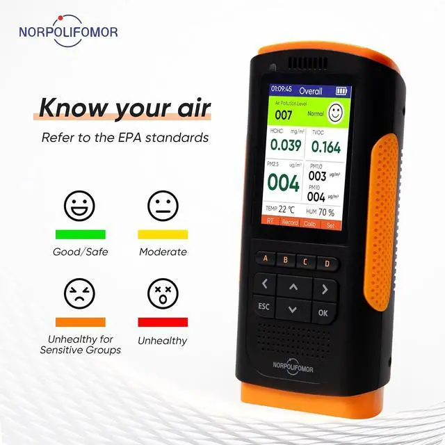 [Intelligent hazard alarm system]: The air quality meter widely applies for different scenarios, home air quality tester, schools, shopping malls, cars, new houses, offices ect.. Once the value of pollution exceeds the standard living environment, the air detector will alarm automatically. (This version does not support function regarding temperature switching from to yet. The formula for switching the temperature from to as following: 9 times Celsius value divide 5 plus 32 equal the real time value of )