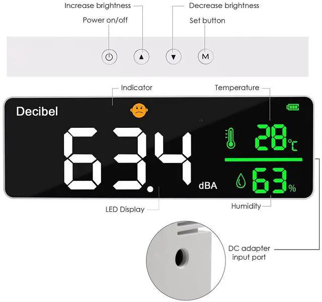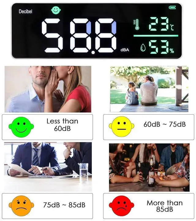 WIDELY USED: This noise meter can be hung on the wall or placed on a table, and is the ideal noise meter for testing sound levels in homes, offices, classrooms, studios, major traffic routes, factories, construction sites, etc.