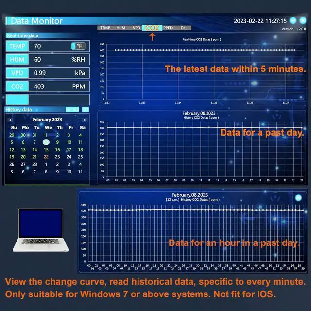 Data logger for CO2, Temperature, Humidity, VPD. Only fit for Windows System, not IOS.