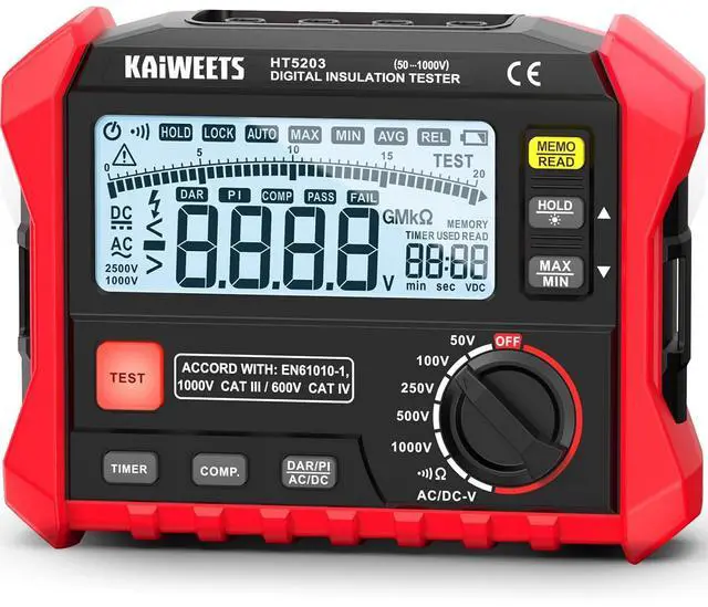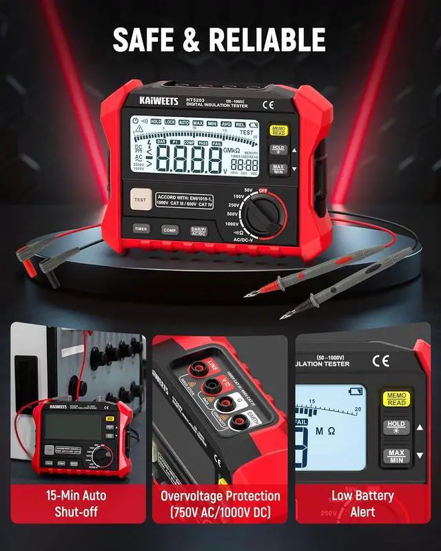 Pro-Grade Safety: IEC 1000V CAT III / 600V CAT IV, rugged double-insulated housing with a durable protective cover for enhanced durability and protection in harsh industrial environments.
