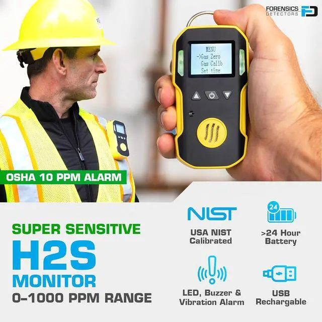 ACCURATE: Hydrogen Sulfide Meter 0-100ppm with 0.1ppm resolution. USA NIST Calibration. Turn ON and GO.