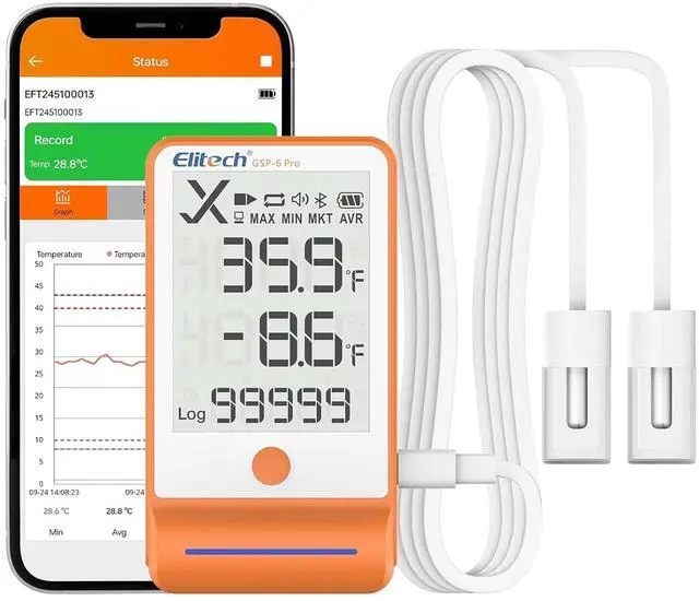 Dual Power Options - GSP-6Pro is powered by AA battery, allowing continuous data recording for up to one year at a 15-minute interval with the alarm turned off at normal temperatures. And USB power option is available for use when the battery is flat.