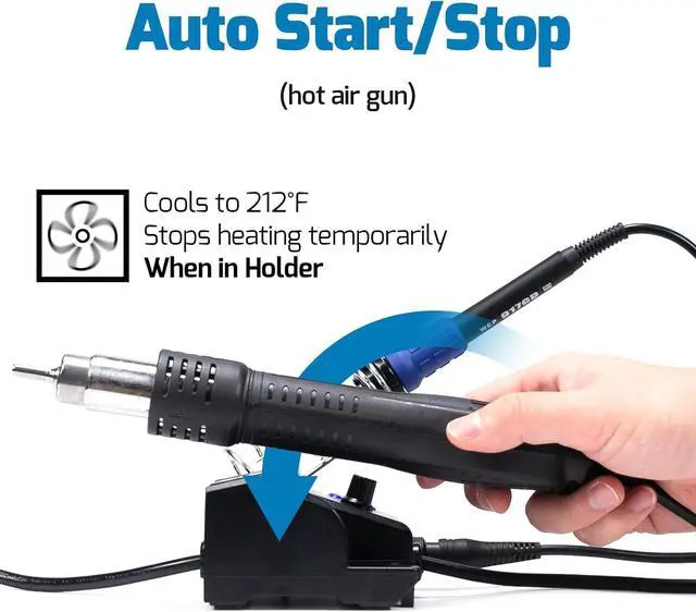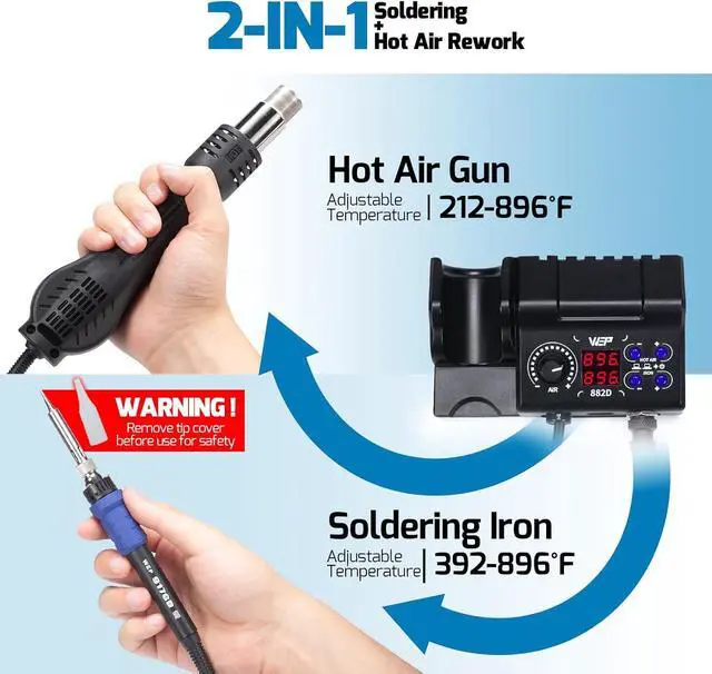 Complete Soldering Kit: This soldering kit for electronics rework includes 2 spools of solder wire, 5 soldering tips (I/B/K/ 3.2D /3C), brass wool tip cleaner, desoldering pump, 1 pairs of tweezers, 3 hot air nozzles. You can get started with soldering with everything in this kit.