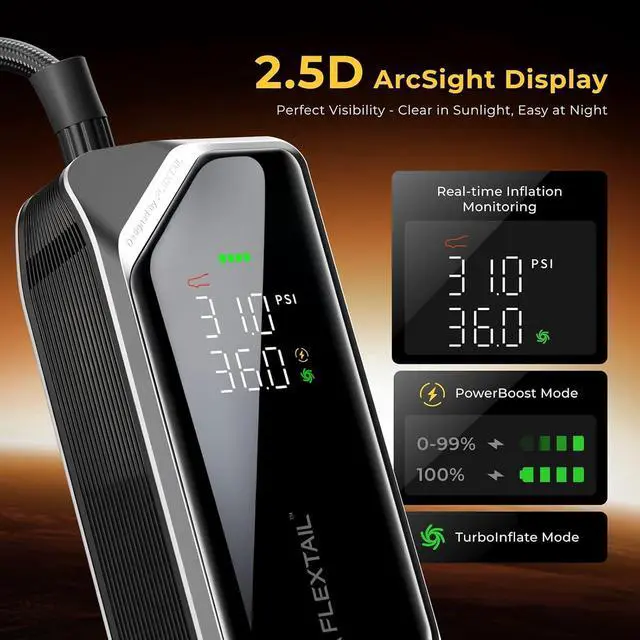 3-Mode LED Light: Built-in three-mode LED flashlight (Bright / Flash / SOS) ensures safety during roadside emergencies, low-light situations, and camping. A dependable portable air compressor that doubles as an essential car tire pump, keeping you prepared anytime, anywhere.