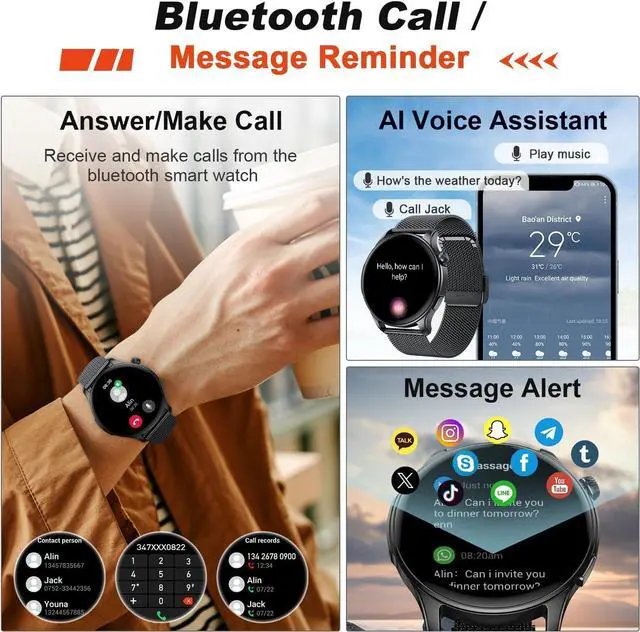 Fitness smartwatch with Multi Functions: Smart watch for android phones comes with lots of useful functional software like alarm clock, music control, camera control, stopwatch, voice memo and more. Smart watch for iphone compatible is a good assistant in your daily life.