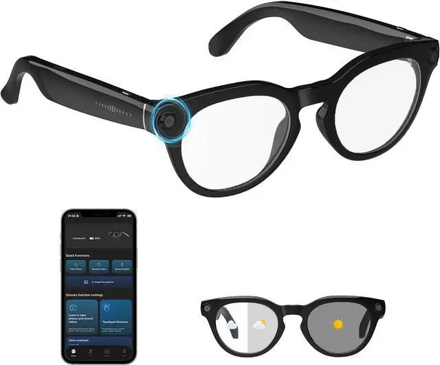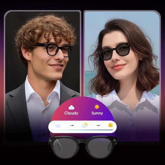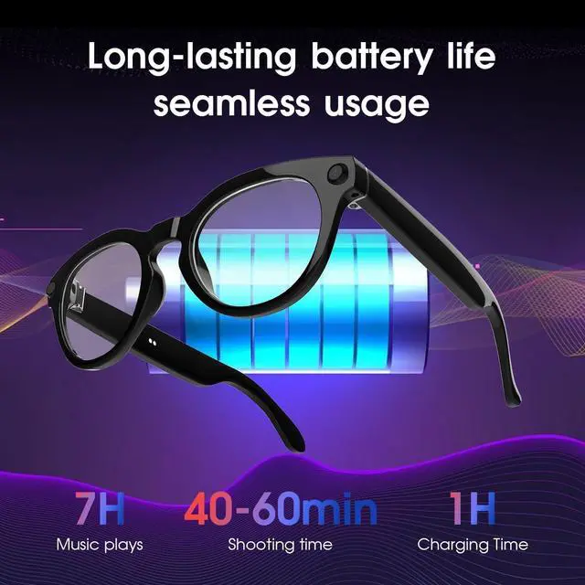 Photochromic Lenses & Extended Battery LifeEquipped with photochromic lenses that automatically adjust from clear to tinted under sunlight, these smart glasses adapt to both indoor and outdoor use. A quick 1-hour charge delivers up to 7 hours of music playback, 4060 minutes of continuous camera use, or 2 hours of callskeeping your video camera glasses powered through your busiest days.