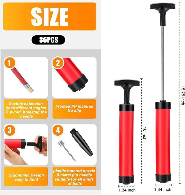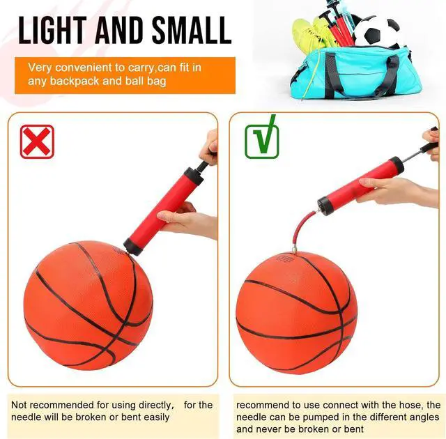 Use: air pump for balls is reliable and easy to operate, place the ball on a table or flat surface before inflating; It is not recommended for direct use, because the needle may break or bend, it is recommended to connect with the hose, the needle can be sucked at different angles, and will not be broken or bent easily, you can adjust the position according to your preferences