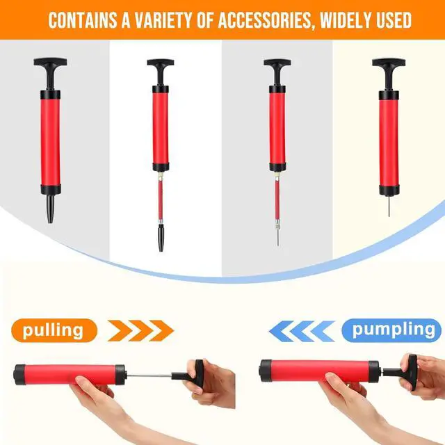 Wide Range of Uses: hand pump for inflatables can pump footballs, soccer, basketballs, volleyballs, playground balls of various sizes, also suitable for swimming circles, balls, inflatable pillows, inflatable arm rings