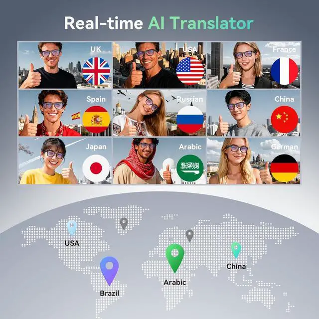 AI ASSISTANT + AI TRANSLATION 0.1 -second ultra-fast smart glasses with camera: Super accurate, real-time multilingual translation eliminates communication barriers! Built-in AI voice assistant with integrated ChatGPT model frees your hands, allowing easy control of music, camera, recording, calls, and even intelligent photo analysis. Your AI assistant anytime, anywhere!