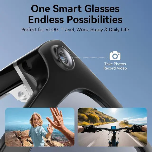 Long-lasting Battery Life 8 hours of audio battery life, 12 minutes of single video recording time. It is not only a camera glasses, but also a recording glasses.