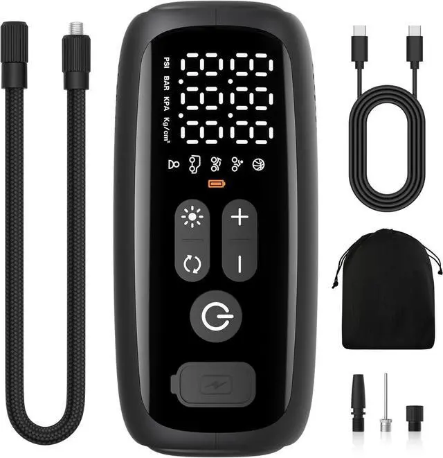 [Intelligent preset + one click operation, get started in seconds] The screen displays real-time tire pressure and supports custom pressure or selecting preset modes (cars/bicycles/balls/motorcycles). No need to be on duty throughout the inflation process, convenient and reliable!