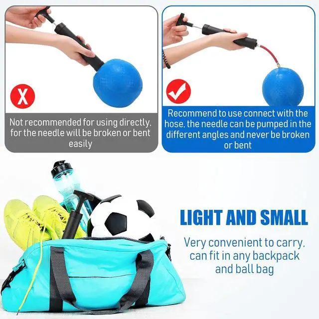 Use: air pump for balls is reliable and easy to operate, place the ball on a table or flat surface before inflating; It is not recommended for direct use, because the needle may break or bend, it is recommended to connect with the hose, the needle can be sucked at different angles, and will not be broken or bent easily, you can adjust the position according to your preferences