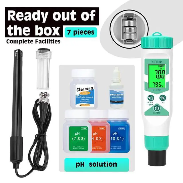 Complete PH test kit: PH tester, 1.2 wired motor, complete set of PH calibration solution 3*50ml ( 4.0 / 7.0 / 10.01PH ), 1*50ml PH electrode cleaning solution, 1*30ml battery Extremely protective fluid to protect your use, calibration and maintenance; it has become a pH testing tool for various industries, including hydroponics, aquariums, swimming pools, sewer pipes, environmental monitoring, water quality analysis, water treatment, aquaculture and scientific research industries...