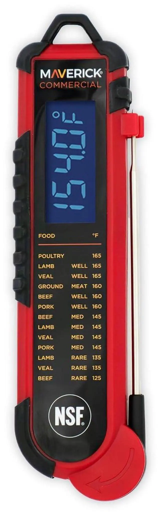 Founded in 1981, has built a strong reputation as an innovator in premium consumer cooking products, offering a wide range of digital and analog cooking thermometers designed for grilling, roasting, candy-making, deep-frying, and more. is best known as the inventor of the modern wireless food thermometeran industry-changing innovation that made it easier than ever for home cooks and grill masters to achieve perfect results. With a continued focus on quality and innovation, remains a trusted leader in smart cooking solutions. The Pro-Temp Professional Thermocouple Thermometer is the ultimate tool for professional and residential kitchens alike, delivering precision and reliability that chefs can trust. Its Type K thermocouple with a stainless steel micro-tip probe provides extremely accurate readings to ± 0.7 °F, while the high-contrast backlit LCD with large 0.5 digits ensures easy viewing, even in busy kitchen environments. Designed for durability, the thermometer is water, dust, and shock-resistant, NSF certified, and includes a built-in meat temperature chart for quick reference. With a wide temperature range from -40°F to 662°F, auto on/off, temperature readings to 0.1 °, and a factory calibration certificate to NIST standards, this thermometer combines speed, accuracy, and convenience for worry-free cooking every time.