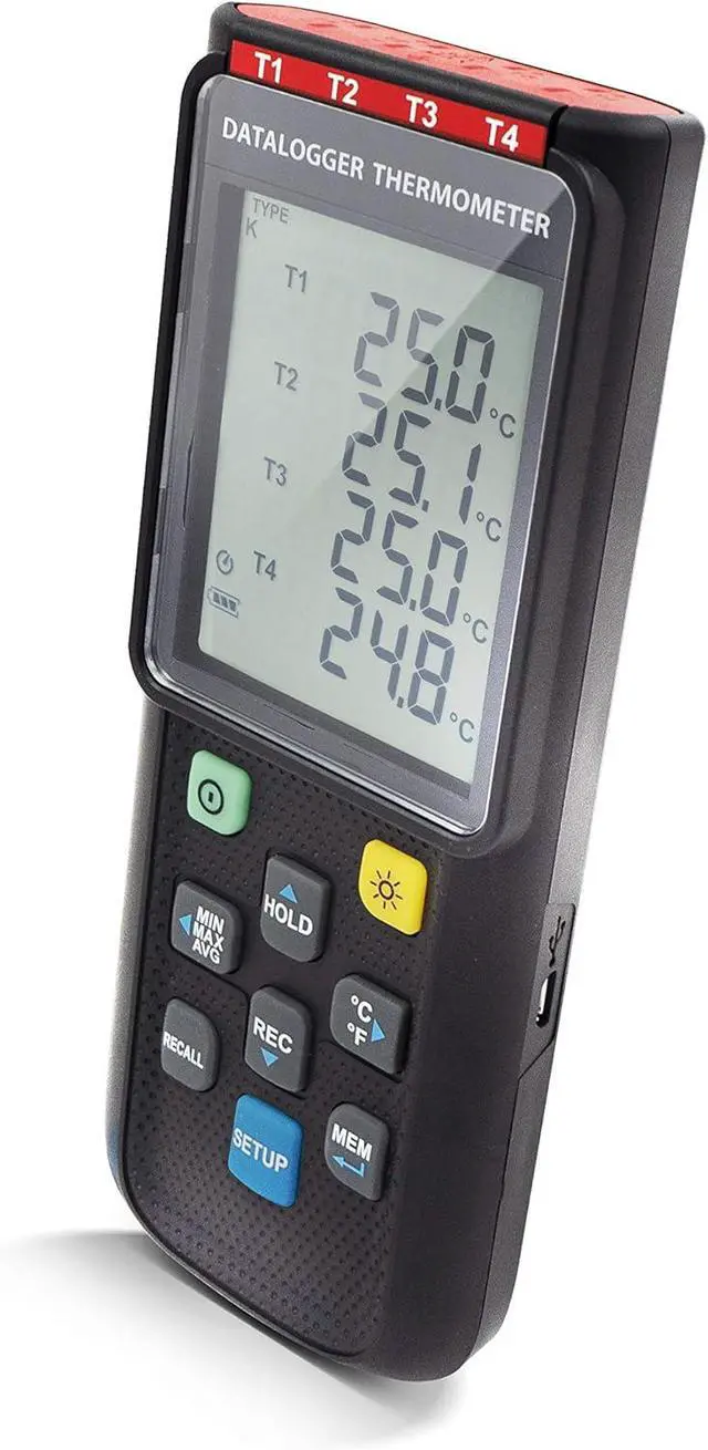Four Channels Thermocouple Thermometer support K , J , E, T Type , 3.35" LCD display
