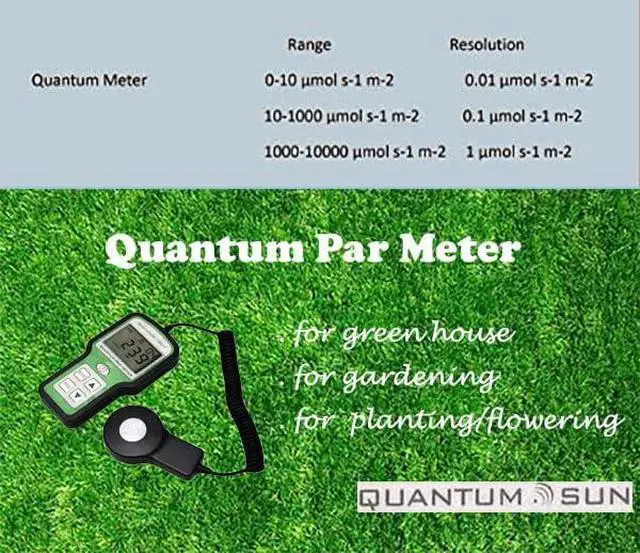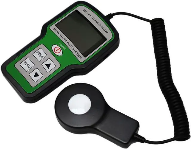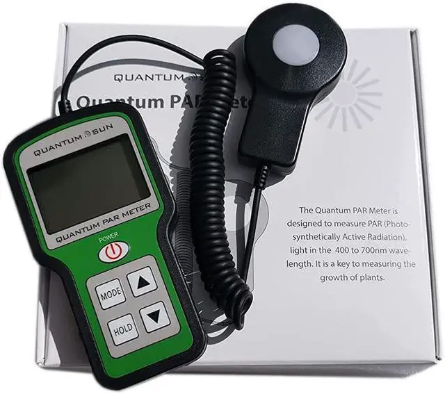 Quantum Sun par meter provides accurate and cost-effective measurement for any light source used in horticultural applications. This fully portable handheld PAR meter features our highly accurate, integrated Quantum Sensor that measures PAR (Photosynthetically Active Radiation) flux in wavelengths ranging from 400 to 700 nm. There is a positive proportional relationship between the number of photons absorbed in 400 to 700nm band and the rate of photosynthesis, so it is important for maximizing crop yield. It measures up to 10, 000 mol/s compared with 2, 000 mol/s for other meters on the market.