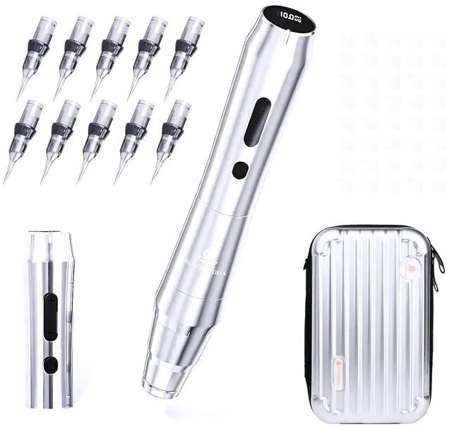 Our Advantage: tattoo pen provides 2pcs 1000mAh portable batteries for replacement and charging, max working time is 5 hours. Supply fast charging, overload protection, 60dB low noise working, and a portable storage bag, suitable for tattoo artists that work outdoors.