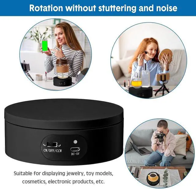 Multi Purpose: the electric rotating base for glitter tumblers can be applied for the display of tumblers, jewelry, toy models, digital products, photography works, etc.; It is also suitable for various scenarios, such as live broadcast, home decoration, product release, shooting and more