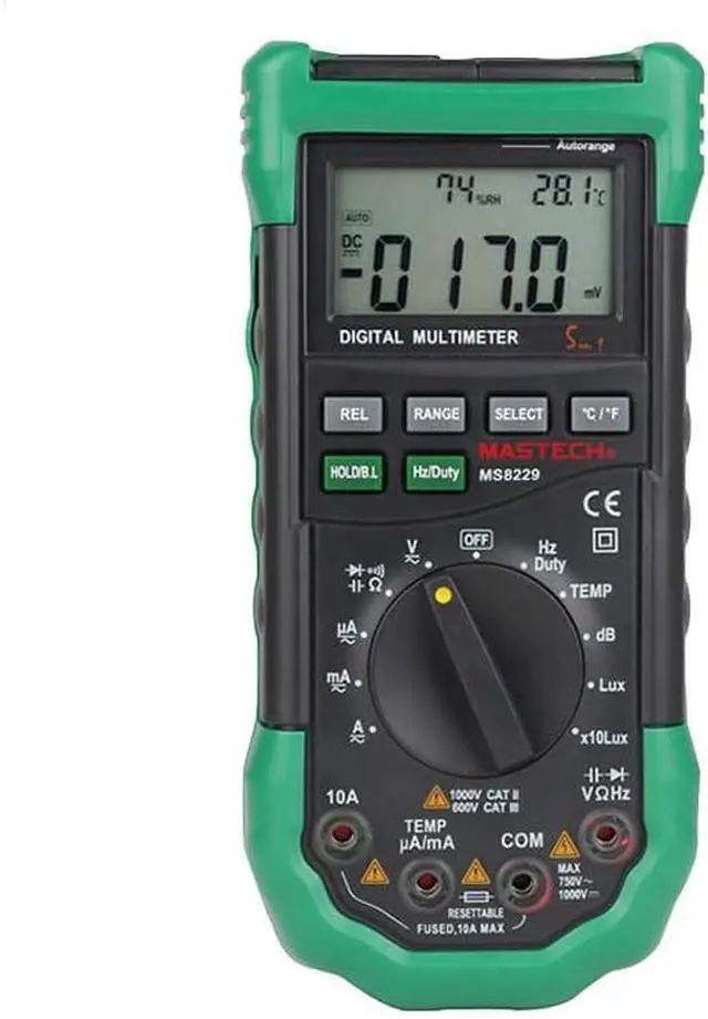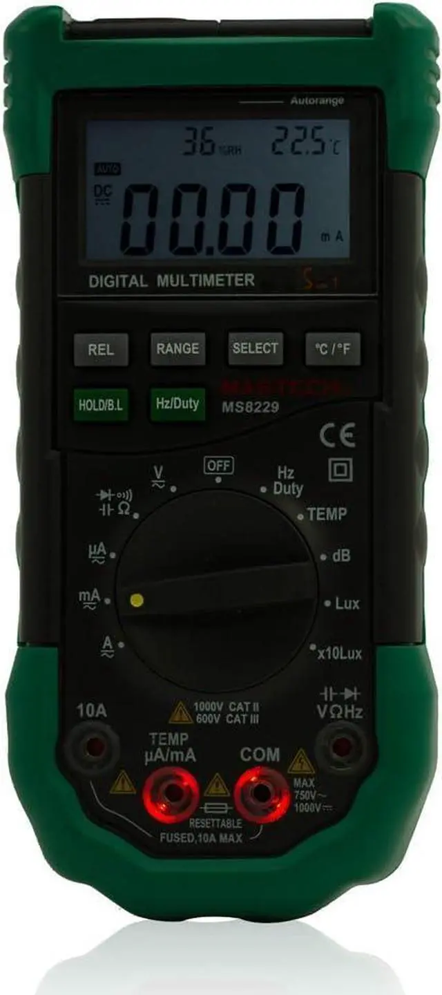 The newly released Sinometer MS8229 DMM is an improved and modified version of the widely praised MS8209, it combines a multimeter, a sound level meter, thermometer, luxmeter, humidity meter all in one. Also it is packed with many nice features such as temperature & humidity display, sound and light warning for the jacks and back-lit LCD Screen.