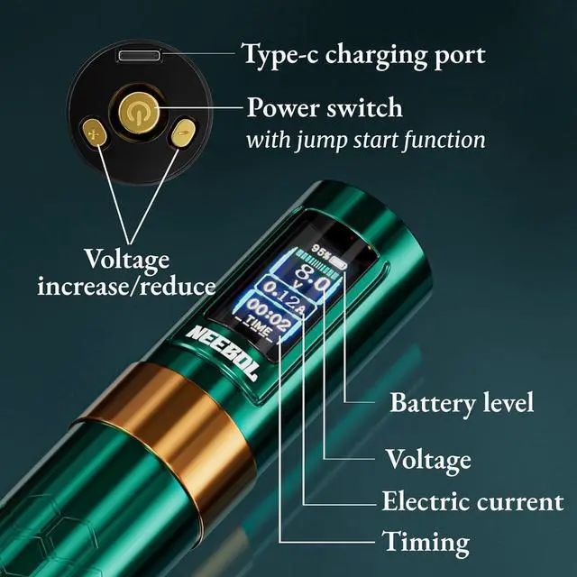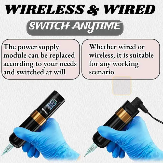 WIRED & WIRELESS SWITCHThe tattoo gun allows seamless switching between wired and wireless modes, catering to the artists' preferences and working scenarios.