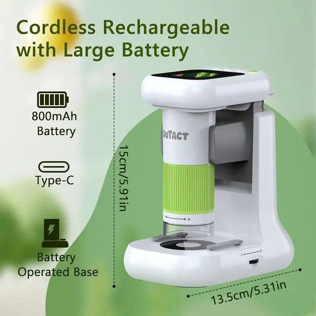 USB PC Connection & Sharing: Enhance learning and sharing! Simply connect the digital microscope via USB to view discoveries in real time on a larger computer screenperfect for classroom demonstrations, family sharing, or detailed observation. With convenient USB-C fast charging, the 800mAh high-capacity rechargeable battery ensures hours of fun!