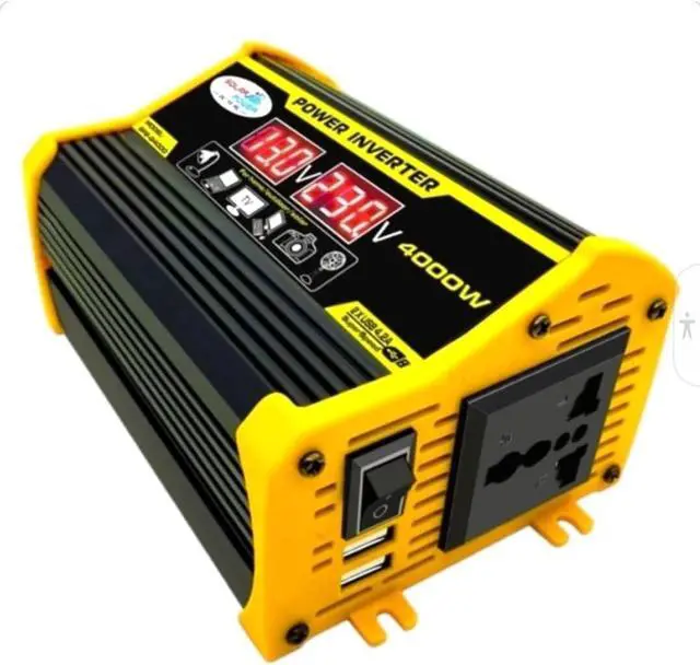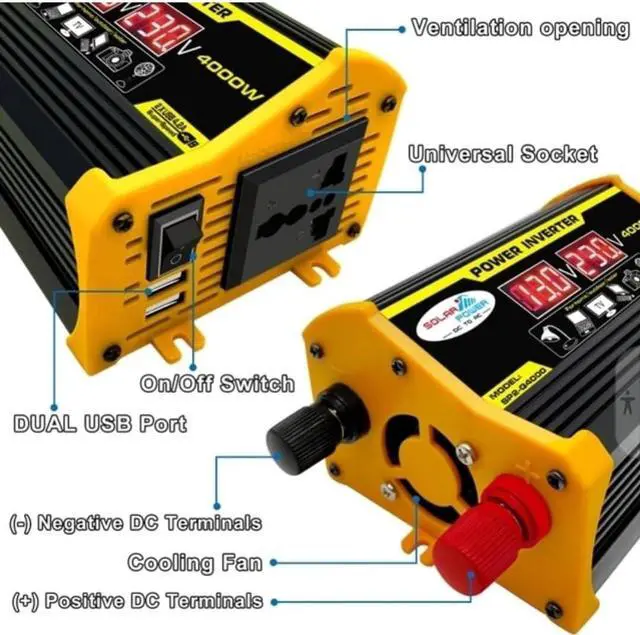 High-Power 4000W DC to AC Power Inverter 12V to 110V/220V Converter with Dual USB Ports, Universal AC Outlet, LED Display for Cars, Trucks, RVs, and Home Backup (Black, 220V)