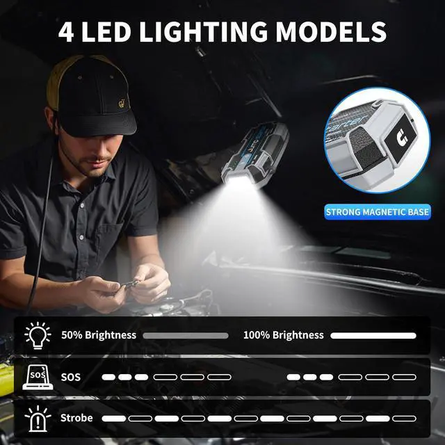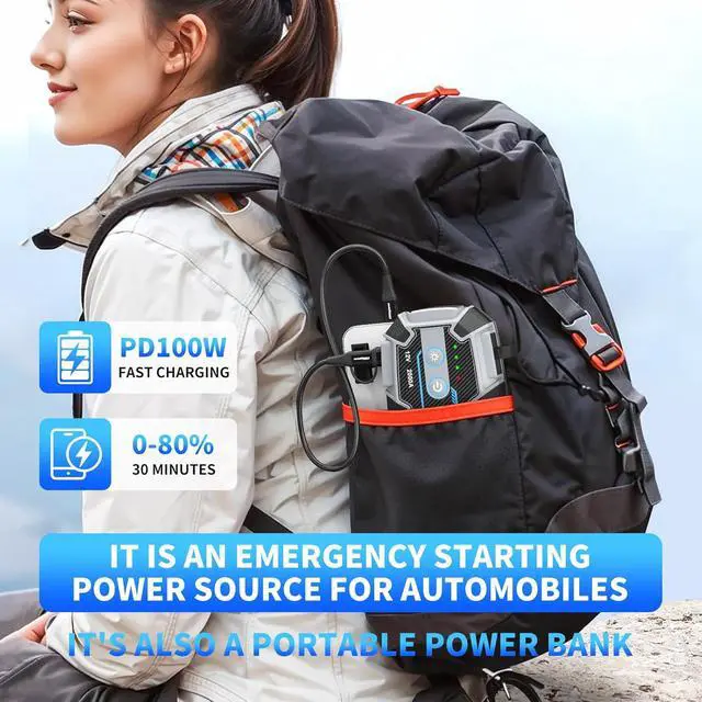 IP67 Water & Dust Resistance Engineered for rugged adventures, this car jumper starter portable kits sealed design withstands heavy rain, dust storms, and harsh outdoor conditions. With 300% improved durability, its ideal for trucks, boats, and off-road usetrust it in any emergency.