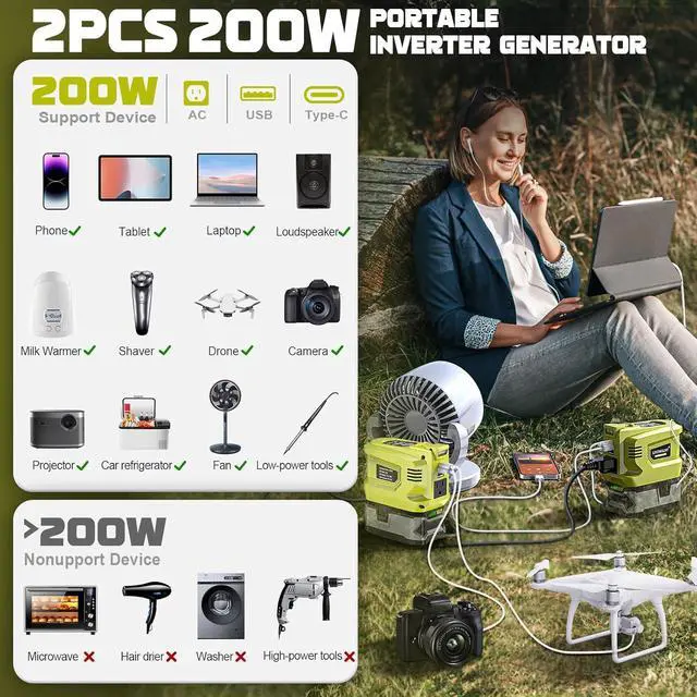 Package Contents: 2 x 200W power inverters only, battery and USB or Type-C cable are not included.