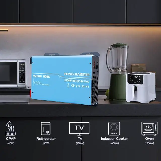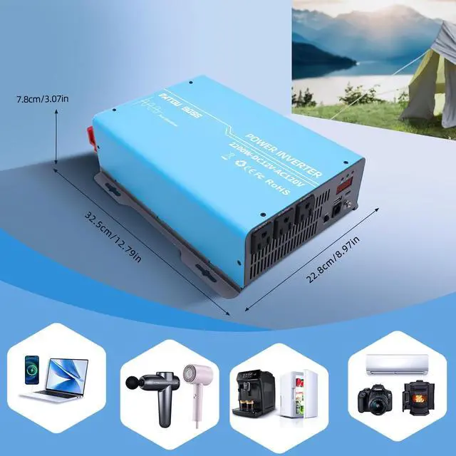 Versatile Applications for Your EssentialsDesigned to meet the demands of road trips and outdoor adventures, the 2200W Power Inverter effortlessly powers vehicle electronics, small appliances, laptops, smartphones, TVs, and power tools, making it an essential addition to your travel gear.