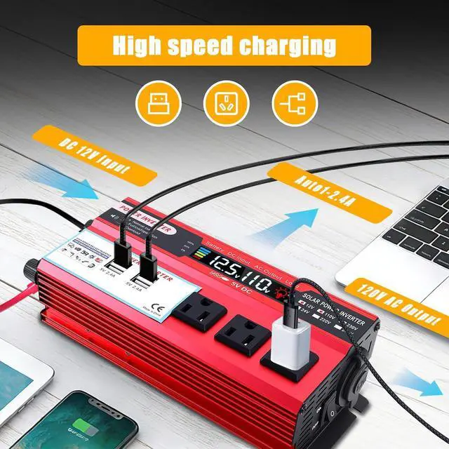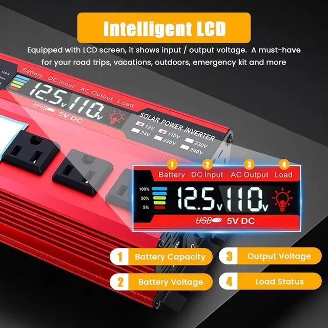 Power Your Expectations: The 12V to 110V Power inverter features 3AC socket, 4x 5V 2.4A USB port, Hardwire Port. This solar inverter is ideal when you need energy for off-grid, outdoors, RV, trucks