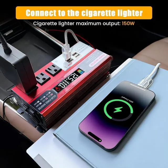 Multiple Safety Protections: The car power inverter provides undervoltage, overvoltage protection, overload, over temperature protection, short circuit and reverse connection protection. Aluminum and sturdy plastic housing ensures long term use