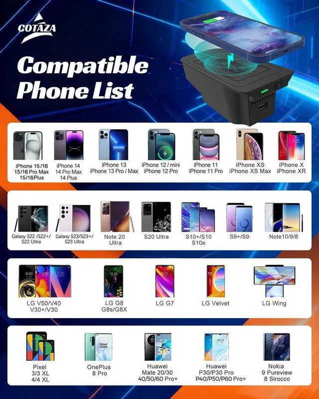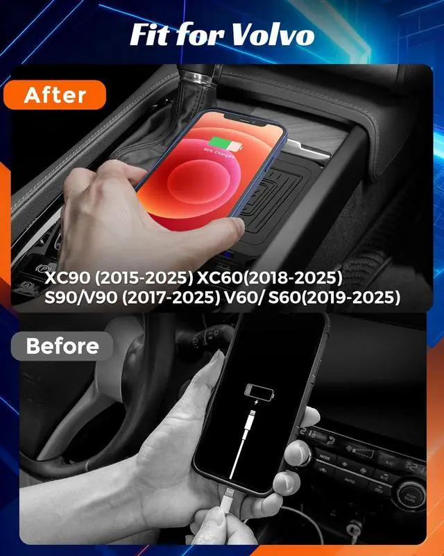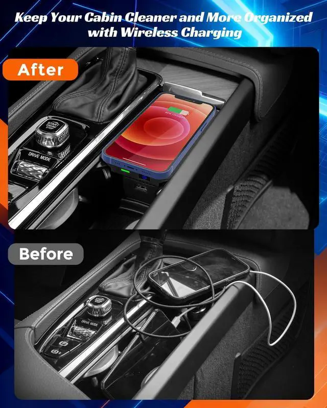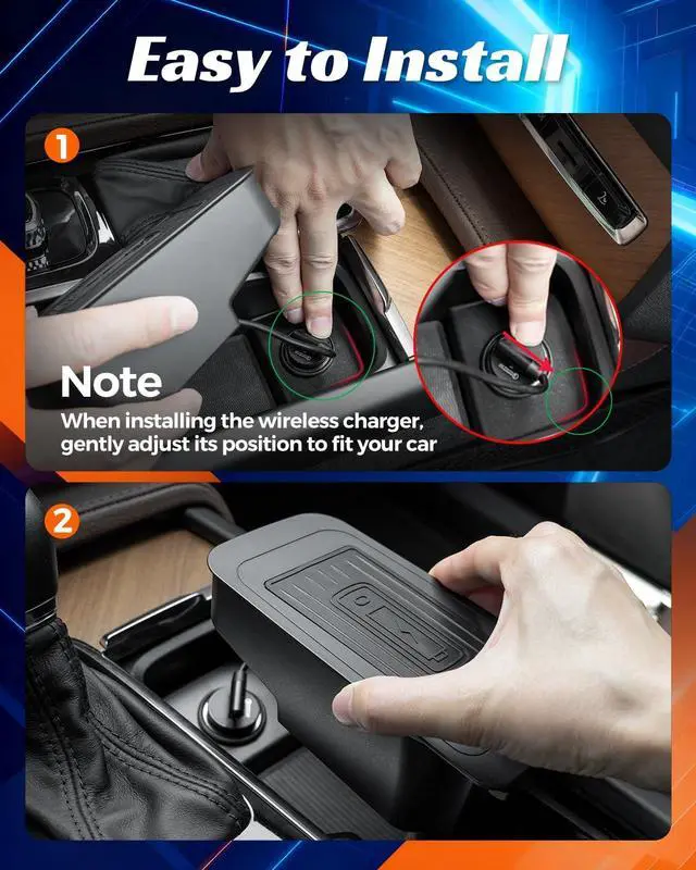Neat and Integrated DesignOnce installed, simply place your phone on this wireless car charger to start charging no cables are exposed, keeping your console area tidy and organized. This wireless charging pad helps maintain a clean interior while seamlessly integrating with the center console for a streamlined, professional look