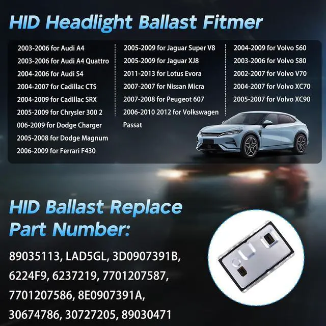HEADLIGHT BALLAST FUNCTION - The ballast provides the starting voltage, regulates the voltage and current during operation to ensure consistent brightness without dimming, fading or flickering, and increases the life and energy efficiency of the lamp. Without a ballast, the lamp will burn out quickly.