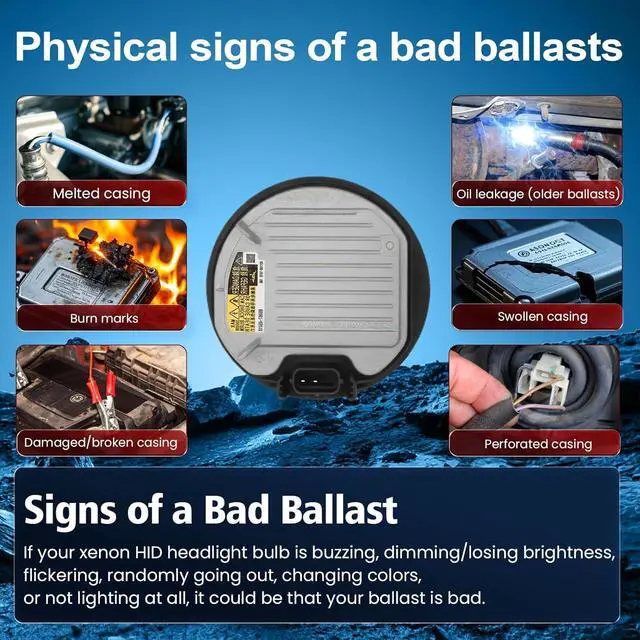 NOTETo properly diagnose your headlight fault, try moving the ballast from your working side to the non-working side. If the headlight begins to work, this replacement ballast will fix the problem. If the problem persists, a different component is causing the fault (most likely the bulb or wiring). You can contact us if you have any question, we will reply within 24 hours and help solve the problem.
