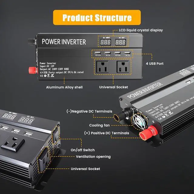 Universal Compatibility: You can use 110V AC power anytime and anywhere just by connecting 1200W power inverter to 12V battery through cable. It is very suitable for power failure, emergency, vacation, car, RV, truck, solar energy, home, remote workplace or any place where AC power is required