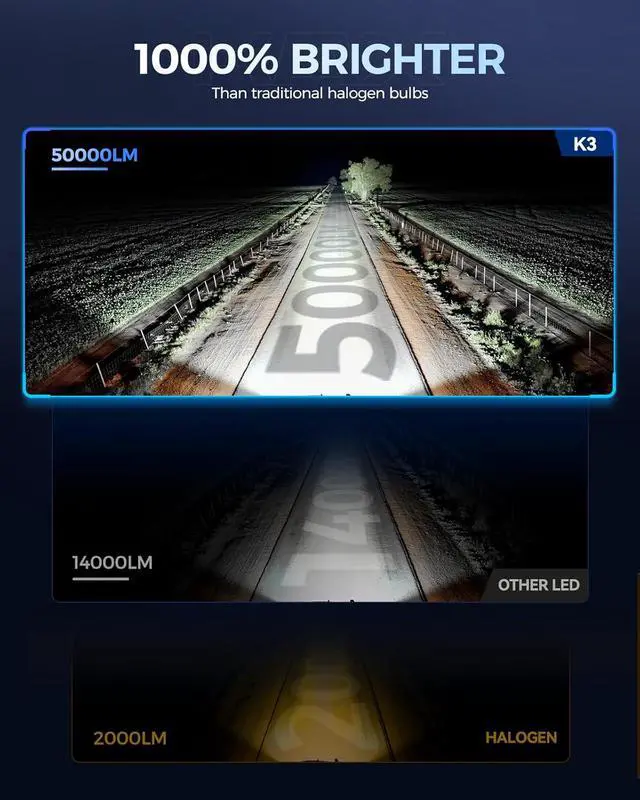 Enhanced Peripheral Vision: The brighter illumination provided by LEDs improves peripheral vision, which is critical for detecting movement along the roadside (e. g., people or animals on bicycles), thus enhancing overall road awareness.