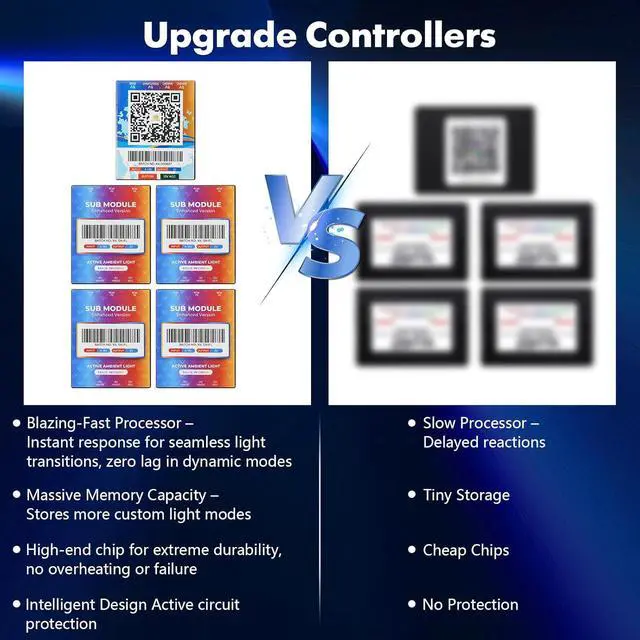 Durability & Intelligent Protection Built for the long haul. Our upgraded controller features a blazing-fast processor and massive memory for flawless performance. Premium plastic housing and high-end chips ensure extreme durability with no overheating or failure, even in demanding conditions. Active circuit protection safeguards your vehicle's electrical system, making these the safest led car lights interior available.