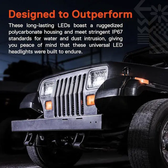REPLACEMENT FOR JEEP - This H6052/6054 universal 5x7 LED headlight 2B1 sealed beam bulb kit is compatible with various vehicles manufactured between 1970 - 2017 and are the perfect replacement for Jeep Wrangler YJ and Jeep Cherokee XJ headlights.