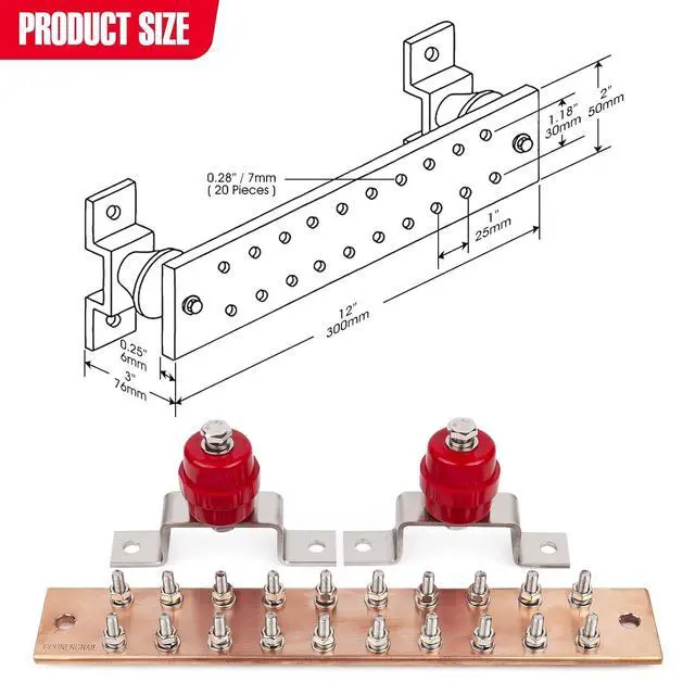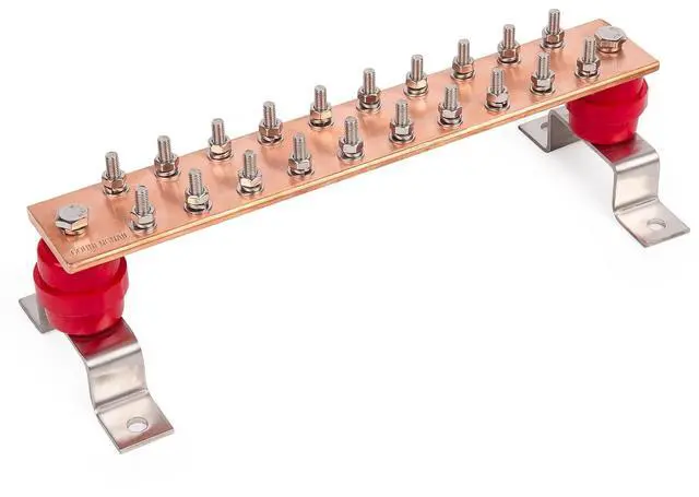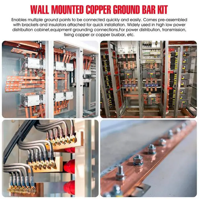 Wall mounted copper ground bar kit enables multiple ground points to be connected quickly and easily. Comes pre-assembled with brackets and insulators attached for quick installation. Widely used in high low power distribution cabinet, equipment grounding connections, For power distribution, transmission, fixing copper or copper busbar, etc.