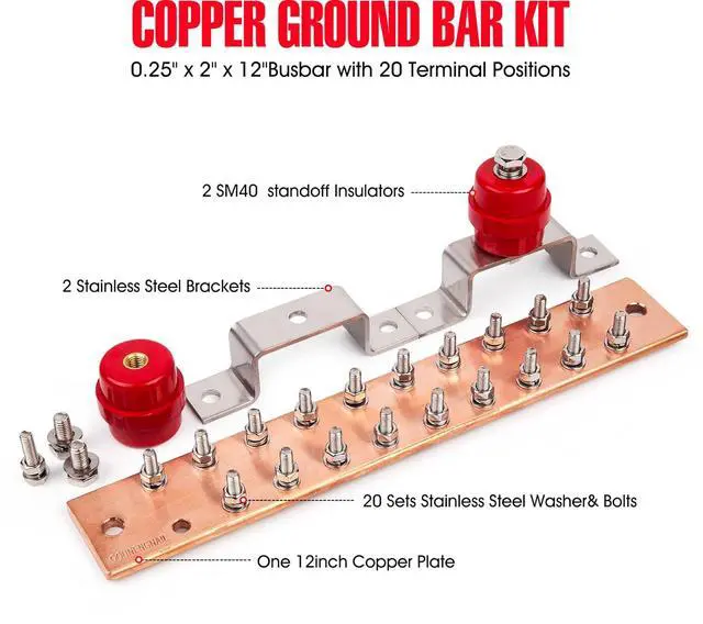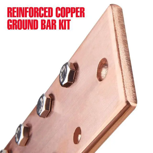 Copper Ground Bar Kit -. 25" x 2" x 12" Busbar with 20 Terminal Positions