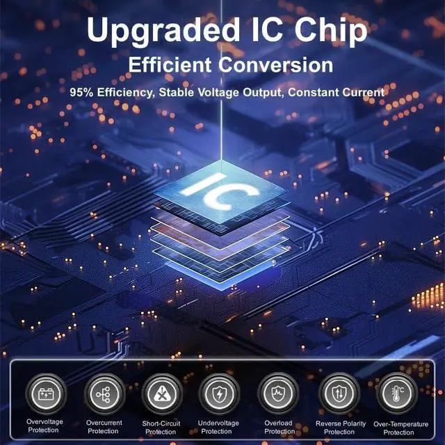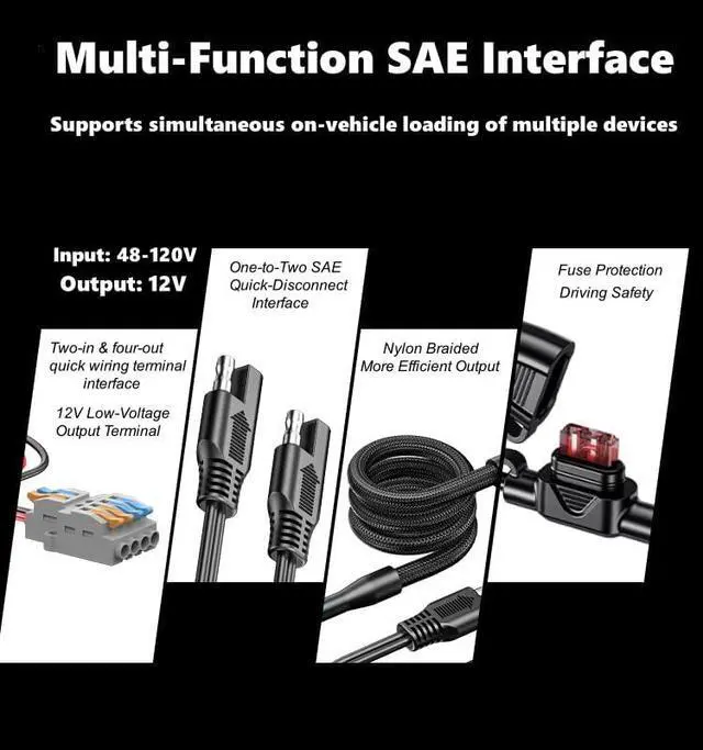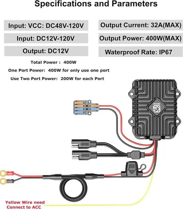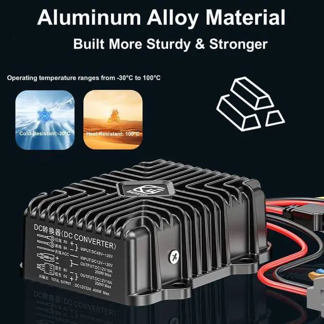 Application: High-power 400W for automobiles, trucks, golf carts, LED strip lights, screens, monitoring systems, motors, solar systems, powers 12V accessories like headlights, taillights, radios, and LED lighting, runs 12V appliances, lighting systems, and electronics