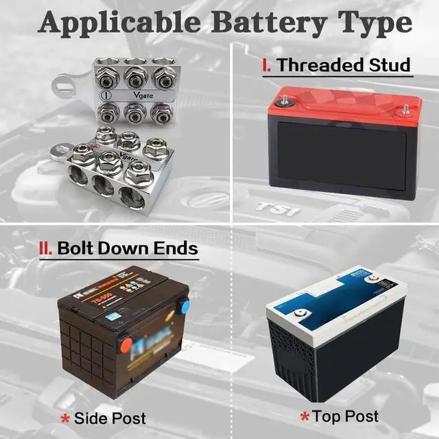 - Battery Post Type: Bolt Down Ends or Threaded Stud. (Remark: Bolt Down Ends including Top Post and Side Post)