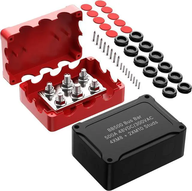 Waterproof: The 500 amp copper battery bus bar comes with waterproof rings, which can act as a sealing function, so it makes your wiring more secure and reliable. This set of red and black busbar also comes with removable plates, it let the wires&terminals go through very easy and prevent short circuit