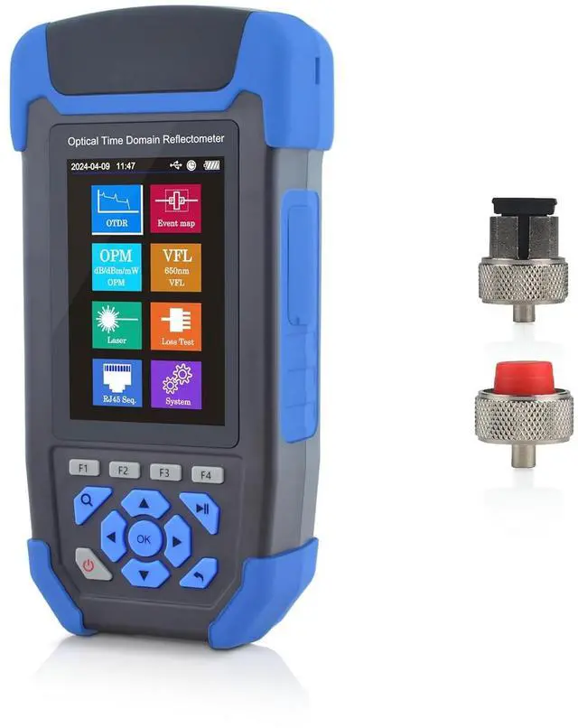 COMPATIBLE WITH APC&UPC SC+ST+FC+LC CONNECTORS: SS303T-2A1 SM OTDR provides SC, FC adapter, 2pcs*FC-FC/SM optical fiber patch cord and FC-SC, FC-ST, FC-LC, FC-FC flange, many types of fiber optic connectors can be connected through fiber optic jumpers and flanges.