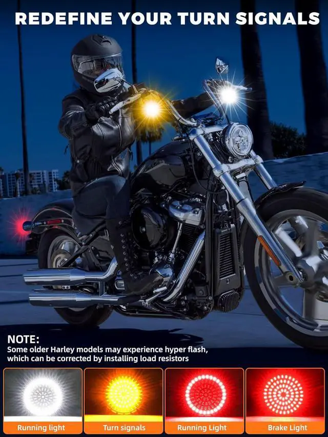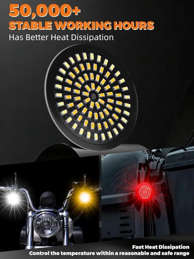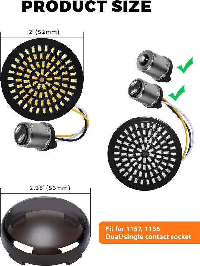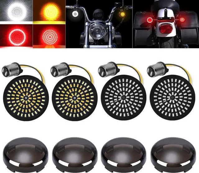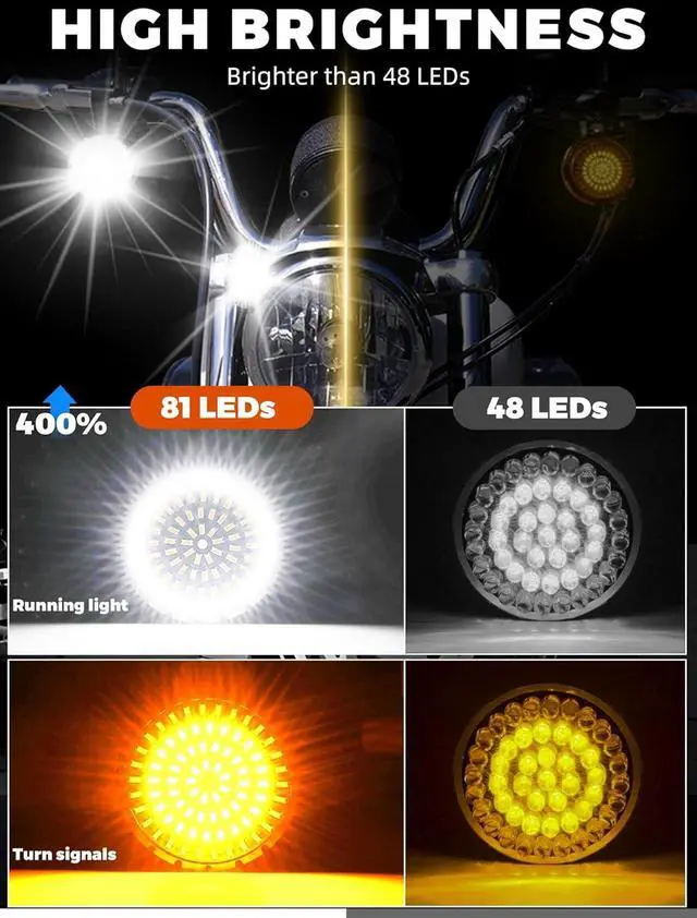 4 LIGHTING MODES - Fully higher intensity design, front white or amber for running light & turn signals. Rear led lights for running or brake light. Comes with 4 smoked signal lenses, enhances the bike appearance. It can light up the road makes you to be more noticeable when you ride in dark