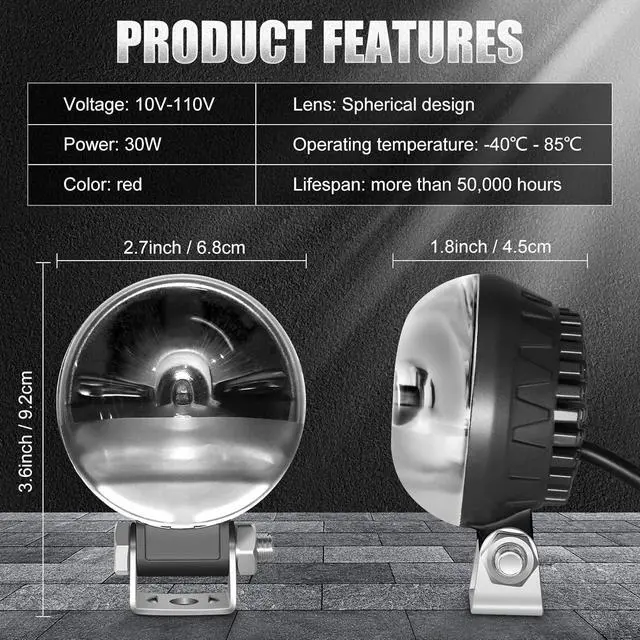 INSTALLATION AND USE: The black cable connects to the negative terminal, and the red cable connects to the positive terminal. 30W DC10-110V Provides efficient illumination for increased safety. Suitable for forklifts, warehouse handling equipment, and AGV handling equipment.
