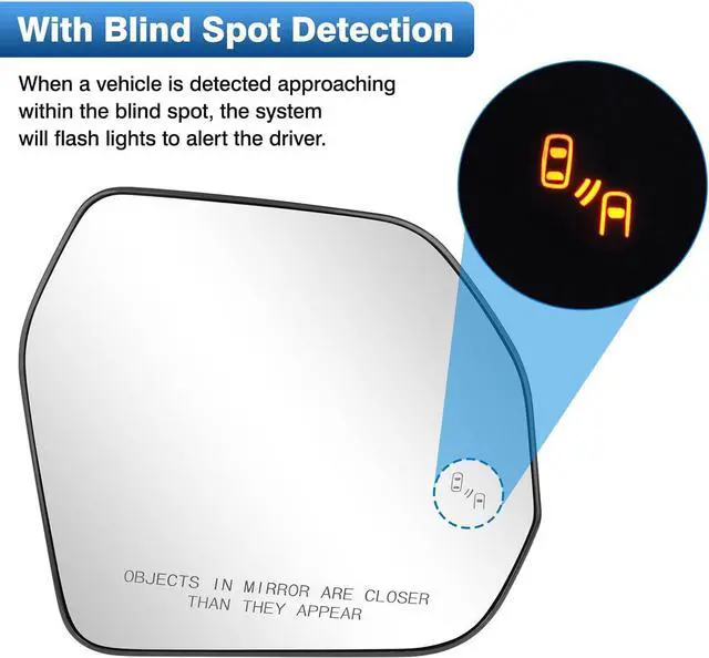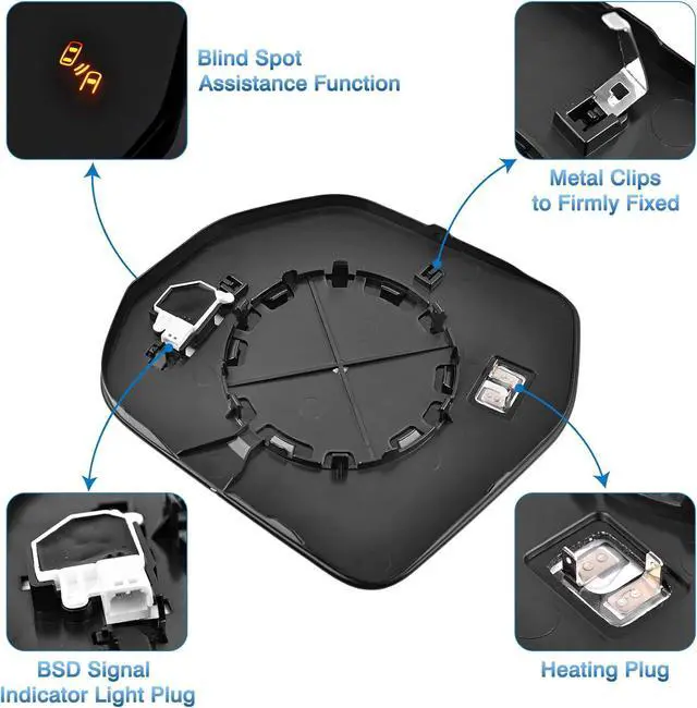 Package Include: 1 x Passenger Right Side Mirror Glass with Blind Spot Detection, 2 x Metal Clips.